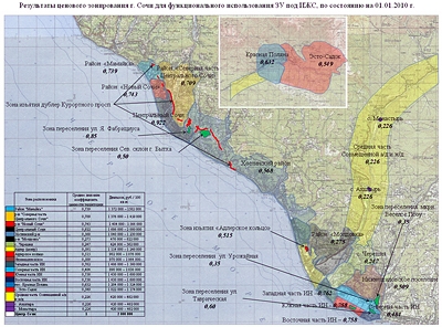 Рассмотрим Результаты ценового зонирования г.Сочи для функционального использования земельных участков под ИЖС по состоянию на 01.01.2010