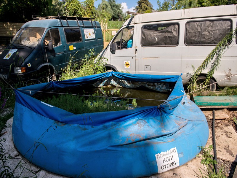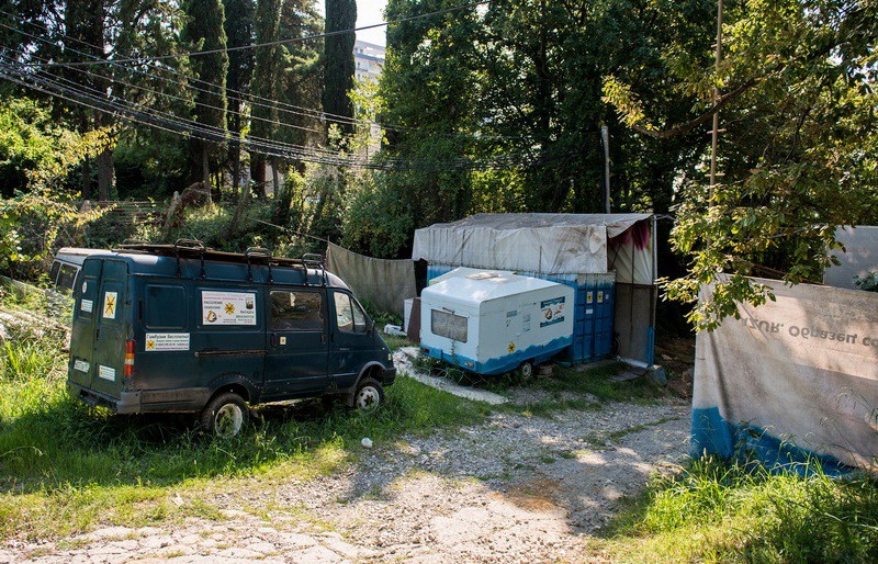 Мои попытки докричаться до сотрудников питомника потерпели неудачу. Все вокруг имело весьма заброшенный вид. Не заметил я на территории и тысячи саженцев эвкалиптов, обещанных городу. Набитые ненужным хламом «Газели», заросший бассейн с комарами, выводящимися там целыми тучами. Спрятавшаяся за грязными банерами сараюшка с проводом от электрического столба. Прицепы, контейнеры, грязь, хлам, мусор, бардак. А ведь это санитарная зона охраны адлерского водозабора.