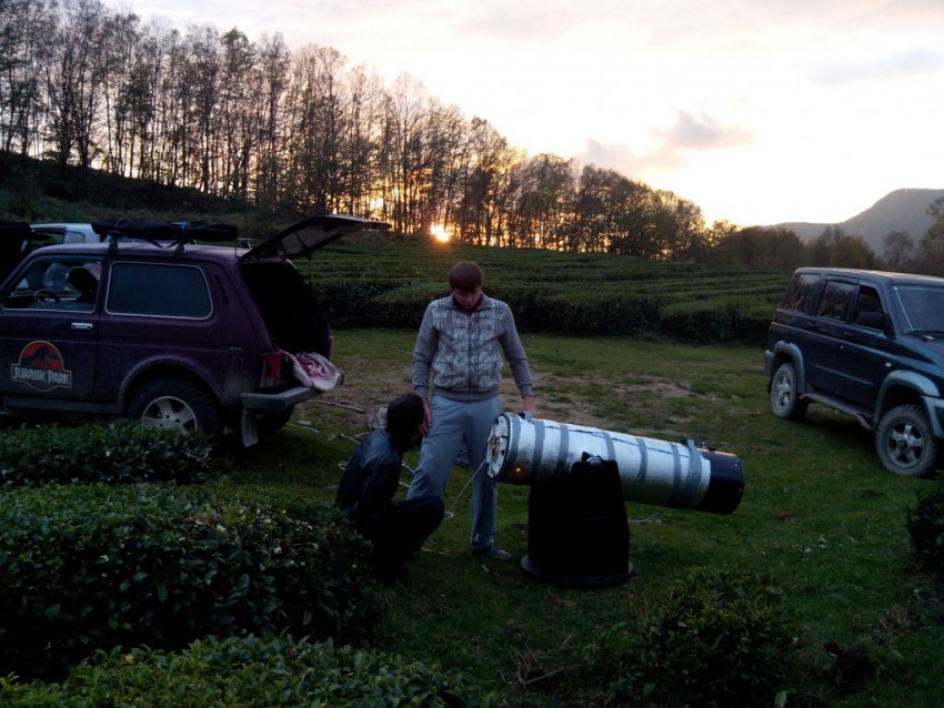 Наш субботний астро-выезд начался весьма необычно. В то время когда мы все собрались (Сергей, Руслан с Толиком, Владимир с Виктором и я) в назначенном месте небо очень сильно затянулось облачностью, и признаюсь честно, я уже даже стал расстраиваться, что выезд будет неудачным. Но прогнозы говорили, что нас ждет ясная ночь. Воодушевившись этой информацией, мы все таки отправились в п. Семеновка на плантации «Мацеста чай».По пути конечно у нас была остановка в месте где МТС еще мог дать интернет, для обновления инфы об облачном покрове с сат24.