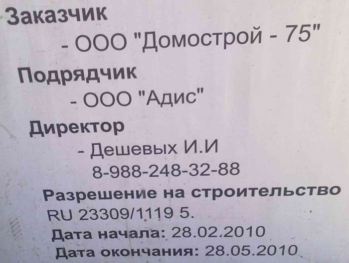 Разрешение № RU 23309/1119 на строительство объекта: «Реконструкция торгового павильона по Курортному проспекту, 47/2 Центрального района» выдано ООО «Домострой-75» на основании заявления и представленных документов, предусмотренных пунктом 7 статьи 51 Градостроительного кодекса РФ, на земельном участке площадью 111 кв.м. с кадастровым номером 23:49:02 04 026:0023.