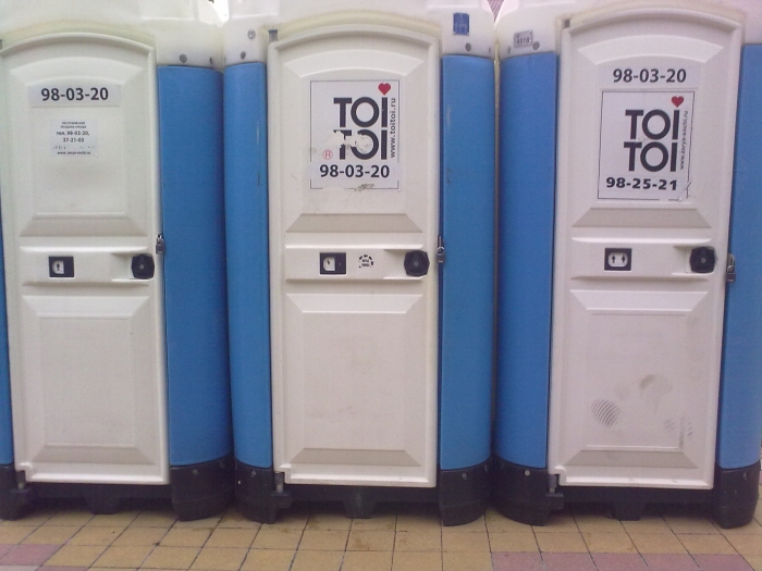 Наверняка есть современные варианты решения этой проблемы, но видимо пока бело-синие кабинки устраивают администрацию.