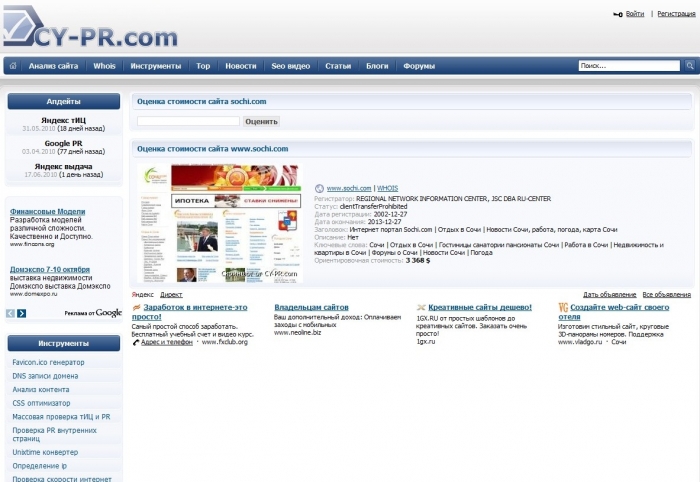 А согласитесь Уважаемые блогеры что многое в нашей жизни имеет свою цену.Вот вчера решил узнать стоимость некоторых сочинских сайтов.Оценка, сами понимаете, приблизительная.Естественно решил начать с «ПриветСочи».