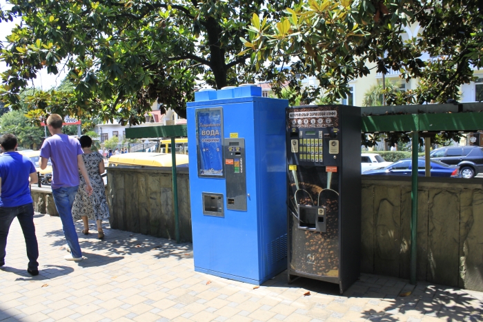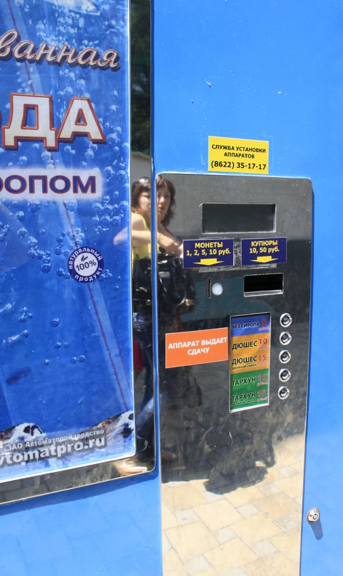 Многие мои знакомые с ностальгией вспоминают автоматы «Газированная вода».Когда в летний полдень, умаявшись от жары опускаешь монетку в прорезь монетоприёмника и автомат с фырчанием наполняет вам стакан живительной влаги.И вы пьёте её большими глотками.Газировка клокочет пузырьками газа в пересохшем горле, проникает во внутрь разгорячённого тела и разливает по нему умиротворяющую прохладу.И вот автоматы обновлённые возвращаются на улицы города.Сегодня один такой я увидел на улице Горького, возле «Сберкассы».Также как и во времена СССР наливает газировку всем желающим, правда денежку просит совсем другого номинала.