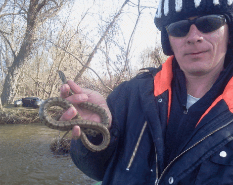 если вы думаете что этот заядлый рыбак рад, то вы ошибаетесь- он облился кипятком )))