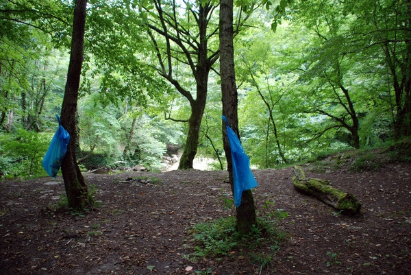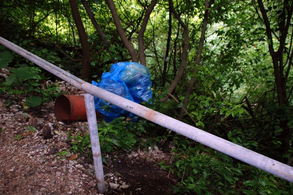 далее вышли к первому мостику, до которого водят всех туристов… самое смешное… там табличка — «Конец рекреационного объекта»… а зачем тогда делали тропу новую, мостик? зачем там парни так «стараются» у водопада...?)) забавно… но и тут мусор… если повернуть вправо от тропы, где ещё есть небольшая пещерка… то внизу можно заметить такое…