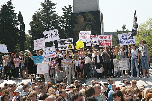 Митингующие выступили за проведение референдума по вопросу о строительстве в городском порту терминала компании «Еврохим», а также за отказ от добычи нефти на черноморском шельфе.