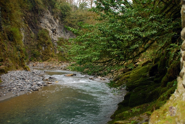 Встретились у водопада с Денисом, поднялись обратно на дорожку и направились к слиянию Агвы и Сочинки.