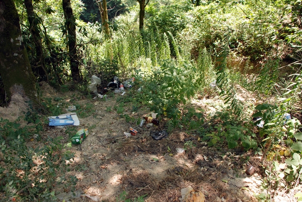 По самой тропе было относительно чисто, кое-где встречались брошенные пакеты, бутылки и пачки из-под сигарет.