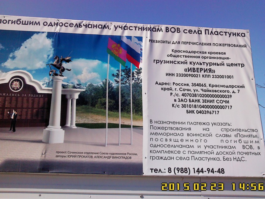 посвящается погибшим односельчанам и участникам ВОВ,в комплексе с памятной доской почетных граждан села Пластунка