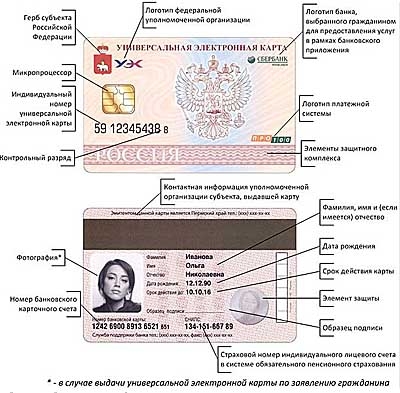 Предполагается, что карта станет аналогом паспорта гражданина и позволит однозначно идентифицировать его. Так, карта будет содержать персональные данные держателя (фотография владельца, фамилия и имя), номер индивидуального лицевого счета в Пенсионном фонде, кроме того, на ней будут выбиты номер и срок ее действия.