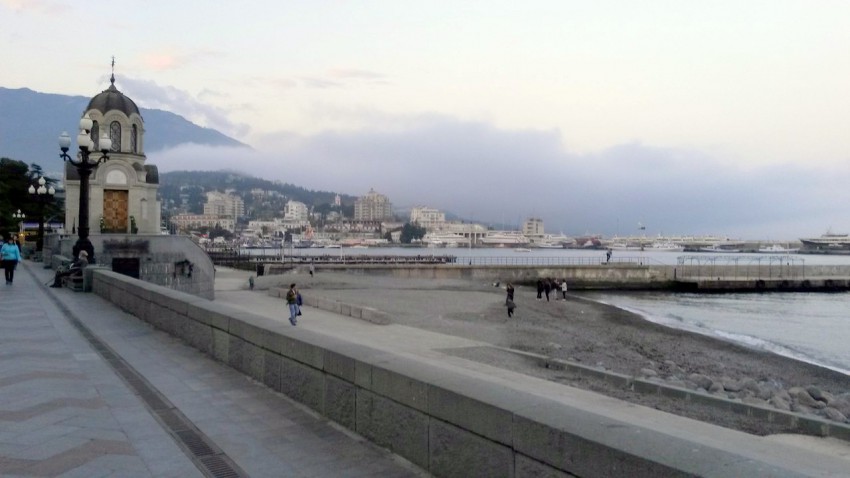 Вечерняя Ялта, береговая линия, очень напоминала набережную города Сочи.