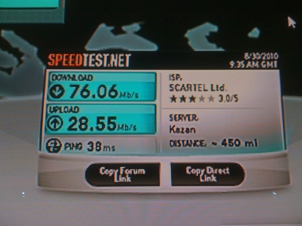 Часть скриншота от 7-го декабря 2010 года (тест на speedtest.net):