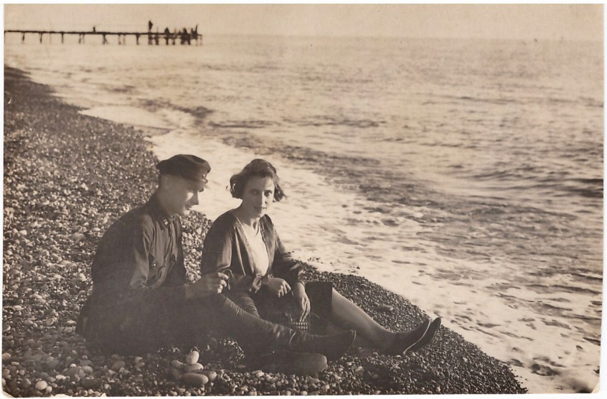 И все-таки детская память о днях войны, в основном, помнит наше с братом пребывание в Адлере. Когда немцы вышли на Черноморское побережье и одновременно пробирались через Кавказские горы, многие горожане уезжали из города. В Адлере жила мамина родная сестра Софья Григорьевна с дочерью Валентиной и сыном Александром. Ее муж, Филипп Иванович Гореленков пропал без вести на фронте. Саша был мой ровесник, а Валя – ровесница моему брату Вове. Так вот мама договорилась с сестрой и отвезла нас в Адлер. У тети Сони был частный дом на ул. Пл. Свободы, 18 (сейчас это улица Демократическая). Дом был построен перед войной (дядя Филипп был строителем по профессии), но не все работы были закончены. Не было сделано внутреннее оборудование первой комнаты и коридора. Война. Все мы размещались в двух маленьких комнатках. Думаю, что мы с братом жили там не меньше года. Во дворе дома было бомбоубежище. Оно похоже на большой блиндаж с земляными ступеньками вниз и бревенчатым накатом, дверей не было. Почти каждый день, а иногда и ночью по радио объявлялась воздушная тревога. Мы должны были выбегать, прятаться в бомбоубежище и находиться там, пока не объявят отбой. Адлер подвергался бомбежкам из-за построенного там сразу в начале войны военного аэродрома. Вот его чаще всего и атаковали немецкие бомбардировщики.