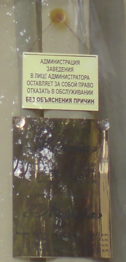 Ответчик признал, что надпись была на двери на входе, а также в меню.
