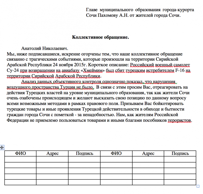 Тут — вот я создал пост о коллективном обращении.