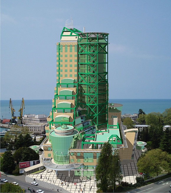 Очень впечатляет 25-ти этажный «кинотеатр». Бассейн наверху- для киномеханика? А вертолетная площадка, наверное, для инвалидов?