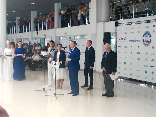 Открытие состоялось в новом морском вокзале Сочи. Было очень торжественно и красиво. И оркестр, и выставка картин, и Аллея Российской славы с бюстами, и гости- Глава Сочи А.Н.Пахомов, представители Совкомфлота и организаторы регаты. И, конечно, экипажи парусников с их командирами и сами парусники. Даже дождливая погода не помешала.