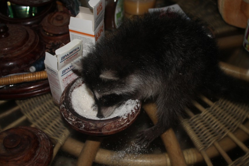 Дома зверь жил на " вольном выпасе ", то есть ходил где хотел, а хотел ходить он по столам выискивая что ни будь сладкое…