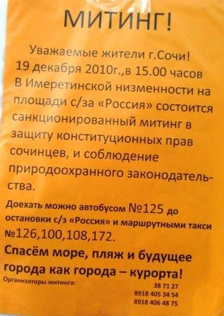 Суд, по таму же вопросу, по иску Сучкова, вынес решение, что публичные слушания по кафе «Лентяй» в хостинской администрации 17.09.2010 года — прошли с нарушениями законодательства РФ и местными правовыми и нормативными актами!