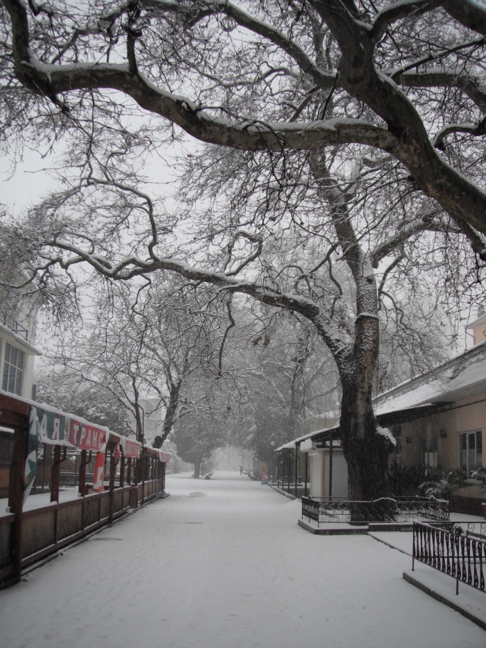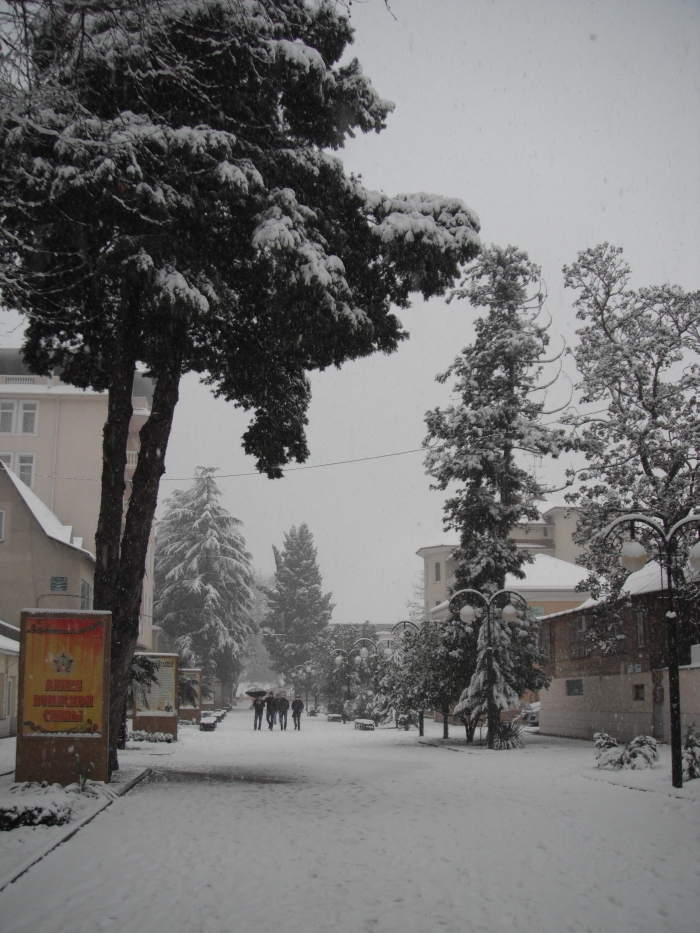 В Сочи невозможно привыкнуть к этой разительной перемене природы, фантастическому контрасту снега и ослепительного солнца, мгновенно сменяющих друг друга состояний моря, неба, гор и побережья. Еще 4 дня назад это был другой город: