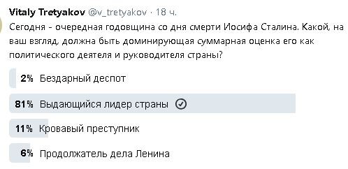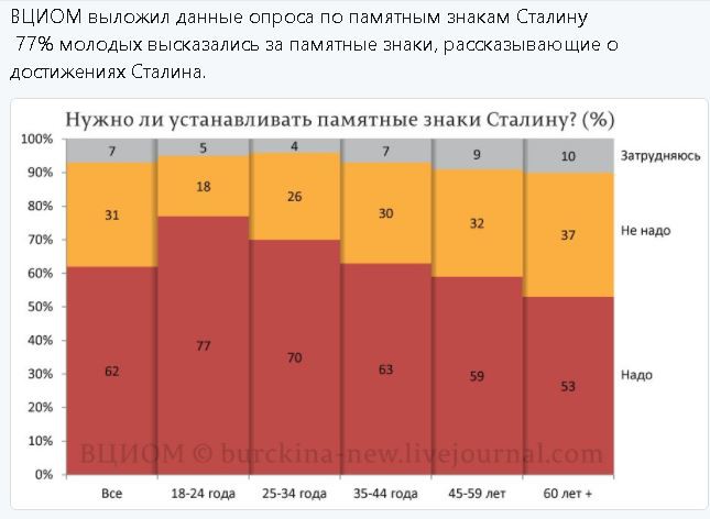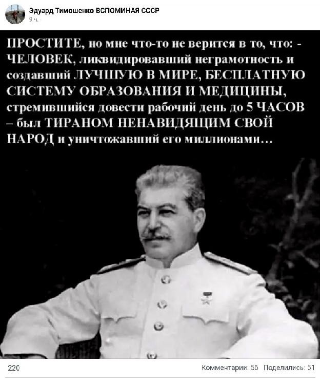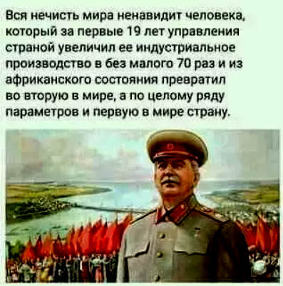 И я даже догадываюсь почему:) Парадокс Сталина в наше время в том, что его чаще всего упомянают в простом народе и как гаранта социальной справедливости и порядка. Как человека волевого, жесткого, но тем не менее — справедливого. А вот критикой его занимаются люди от которых часто можно услышать унизительные рашка, совок, ватники и т.п. в отношении своей страны и народа, а так же восхваление стран соперниц. Люди эти часто поддерживают нацизм, национализм, монархизм, а то и вовсе анархию. Чего они хотят для страны в которой проживают и народов в ней проживающих — вопрос интересный. Монархисты хотя разделить общество на классы, националисты — разделить многонациональную страну на мелкие национальные государства, а то и вообще геноцид черных, желтых, русских, чеченцев и т.п. Особо стоит отметить ненависть к означенной личности всяких олигархов, нуворишей и т.п. категорий людей. Не знаю как вам, а для меня это что то да значит. Желание справедливости у людей с одной стороны и ненависть нуворишей всех мастей с другой.