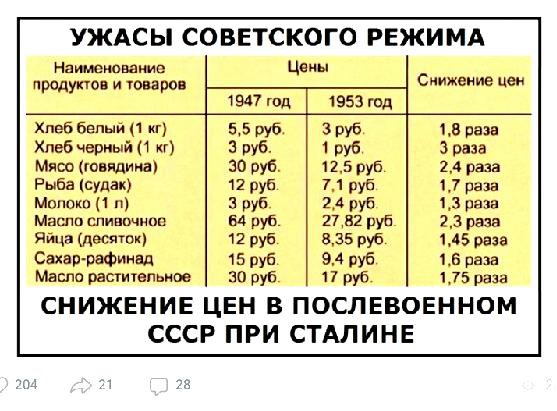 зажравшихсязакушавшихся болтунов — лучше знают тогдашнюю ситуацию, а не по агиткам антисоветчиков! Да еще в СССР регулярно цены снижались:И как вот в сегодняшней демократически либерально рыночной РФ — тогда по помойкам и мусорным ящикам голодные толпами не шастали, люди ходили по магазинам и по рынкам, зарабатывали небогато, но нищих и бомжей — как нынче миллионами — не было!