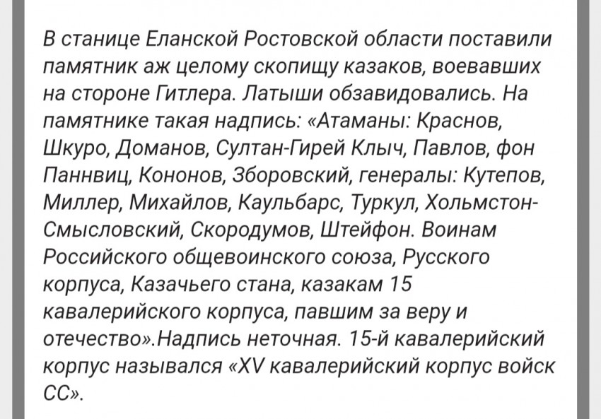 Вот реанимировали казаков — получили памятник такого рода, хорошо, что его сломали.Так они ещё и на реабилитацию фашистов подавали и им отказали.