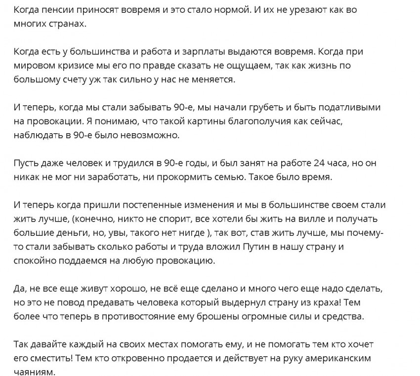 Вопрос в другом все эти тело движения и очередные воспоминания о разных периодов истории типа как было хорошо тогда то или ещё раньше меня откровенно напрягают.
