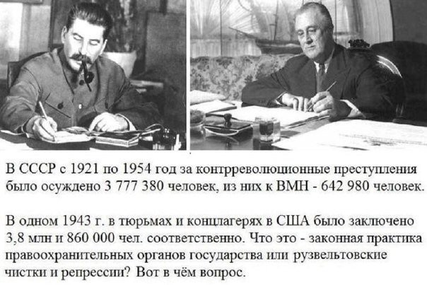 Типа вот смотрите у них в Америке за океаном не хуже, чем у нас.Мы говорим про репрессии в период правления Сталина, а не в период правления президента Зимбабве или Мадагаскара.