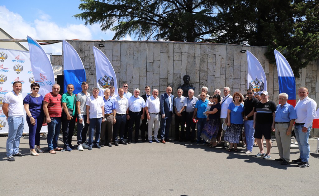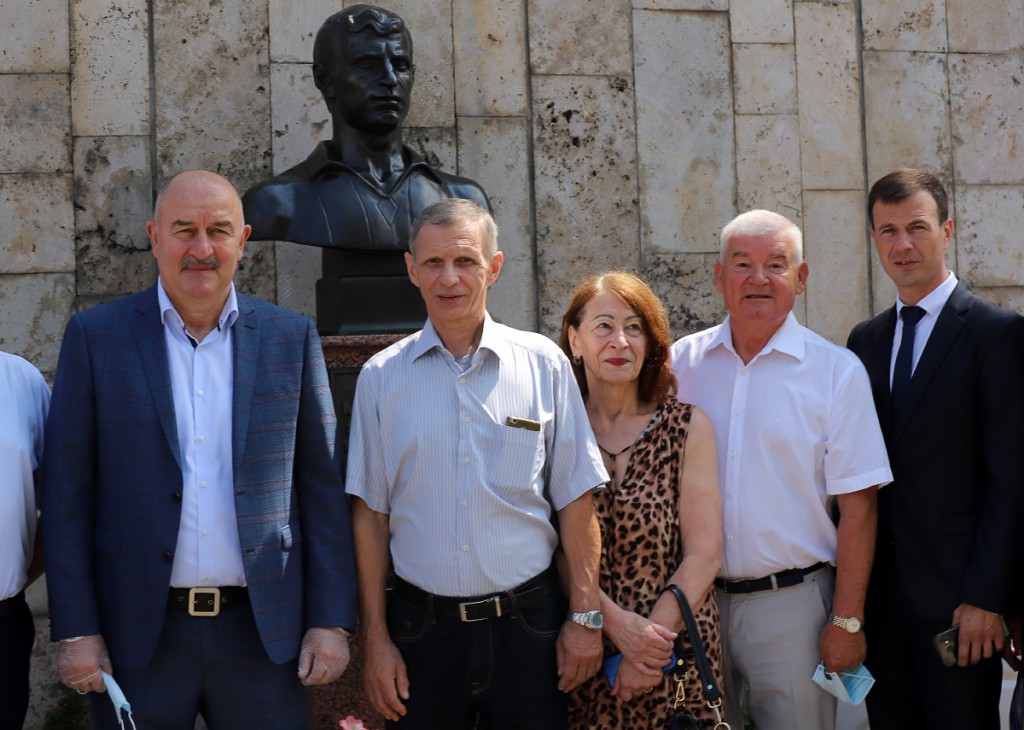 После приветственных слов гости переместились к Западной трибуне стадиона ФГБУ «Юг Спорт» им. С.Метревели для торжественного открытия бюста легендарному советскому футболисту, уроженцу Сочи Славе Метревели.
