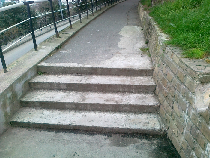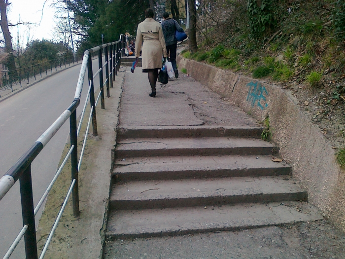 Да явно лестницу такую инвалид не осилит. Но по правую сторону есть дорога на остановку. Но тут…