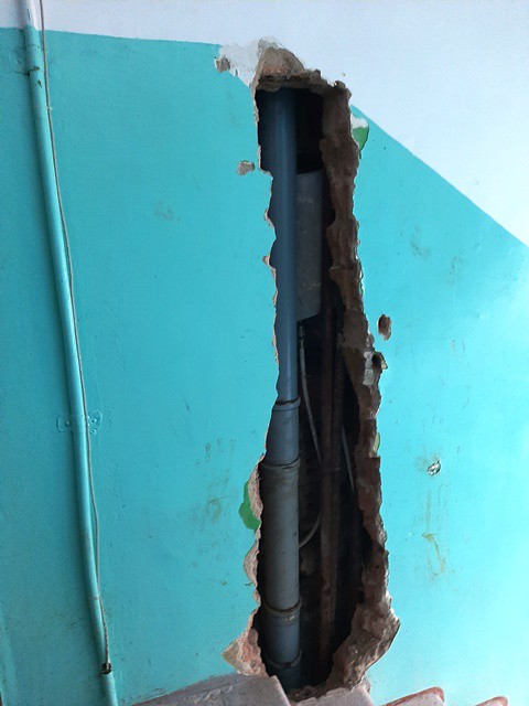 «Сантехники» в трудовом порыве и с горящими глазами первым делом сделали огромные дыры в стенах.