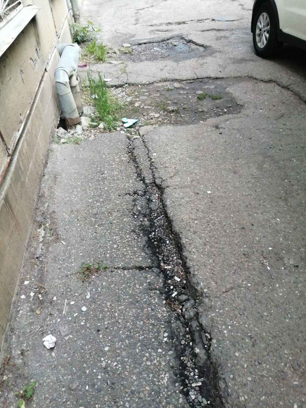 Огромные ямы и трещины – хуже чем после бомбежки, по которой уже небезопасно ходить и скоро даже будет невозможно проехать на автомобилях. И это притом что пешеходная лестница вдоль автомобильной дороги вдоль всей улицы Партизанской уже неоднократно ремонтировалась.