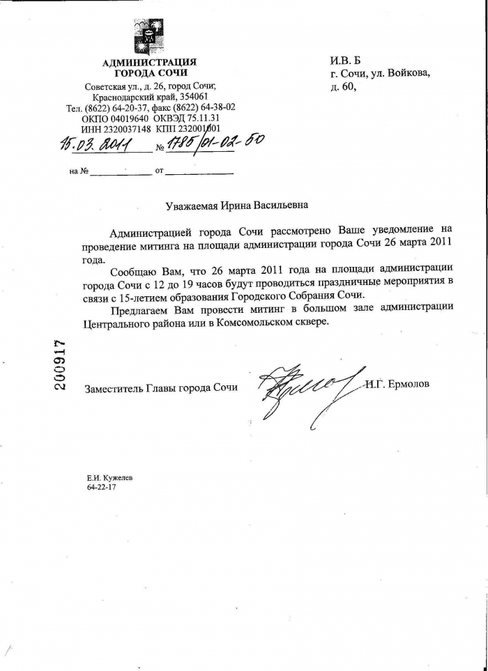 в администрации Сочи 27 августа 2010 года.