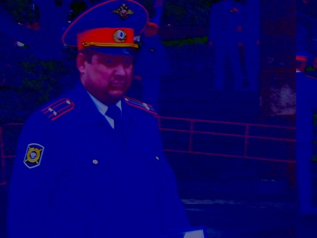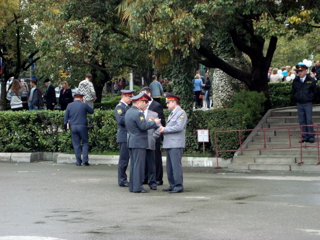Как законопослушный журналист прочел ему в след закон о правах на информацию. Далее ситуация стала просто смешной. За ограждение не пустили журналистов РЕН-ТВ. Набравшись полные легкие наглости я стал завать ретивого полицейского начальника подойти к прессе. На мой крик обратили внимание генералы, и полицмейстр предстал собственной персоной. (к сожалению фото не получилось)