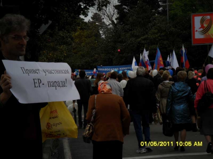 у меня все ходы записаныя был на митинге от и до. Пьяный в дупель бомжара(думаю ангажированный за бутылку) лез в президиум — было дело. Но его бысто дезавуировали. А парня с красным флагом зовут Сурен. Живет на Бытхе. Никого он не оскорблял, и не называл провокатором, и никто его с площади не выводил. Со своим флагом после митинга он прошел всю демонстрацию.grisha