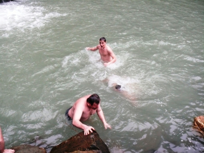 125 метров вверх (по высоте) от слияния Агуры и Агурчика, до больших скал, и потом влево по тропе метров пятьдесят.