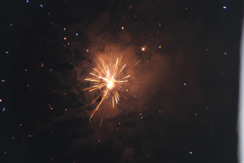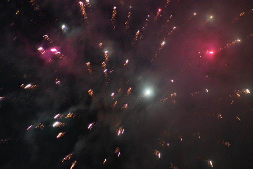 Нерезкость снимков еще более подчеркивает динамичность которая усиливается удачно подобранным цветовым балансом салютов. Заваленный но не видимый горизонт дополняет экспрессию.