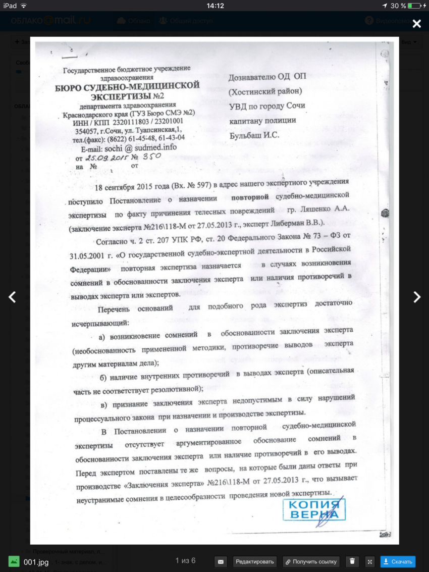 Более того, зам начальника дознания Хостинской полиции, Сополнов А.М., и прокурор Хостинского района, Воробьев Т. Н., в чьих руках сейчас судьба отмены приговора этого незаконно возбужденного УД, неожиданно получив заключения эксперта Шипанова, прибывают в шоке, и что с этим делать « не знают». Саполнов А.М. «попытался» получить пакет мед документов в гор больнице, и на них сделать экспертизу «дополнительную». вызвать на повторное обследование, томографию, Ляшенко А.А., который естественно отказался от проведения томографии, по словам Сополнова А. М. поскольку перелома, у лже больного не было.