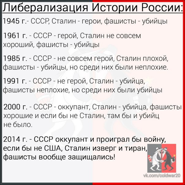 Тот же писатель Радзинский пишет художественную литературу на исторические темы. Но он прекрасно читает свои произведения и его выпускают на ТВ это делать. В итоге часть населения его художественные антисоветские, антироссийские произведения принимает за чистую историю и под его душераздирающие крики тоже приходит в ужас от нашей истории.