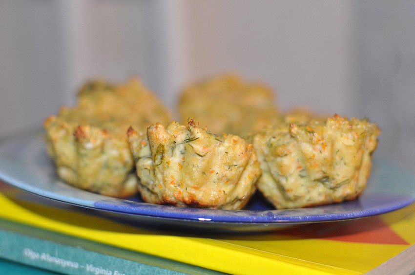 Взяла 3 куриные грудки сырые, одну морковку, небольшую луковицу, три зубчика чеснока, пучок кинзы, петрушки и все хорошо взбила в блендере. Чуть-чуть добавила соли и черного молотого перца. Два яйца и совсем немного муки — буквально пару ложек. Разложила смесь по кексовым формочкам и поставила запекаться в духовку на полчаса.