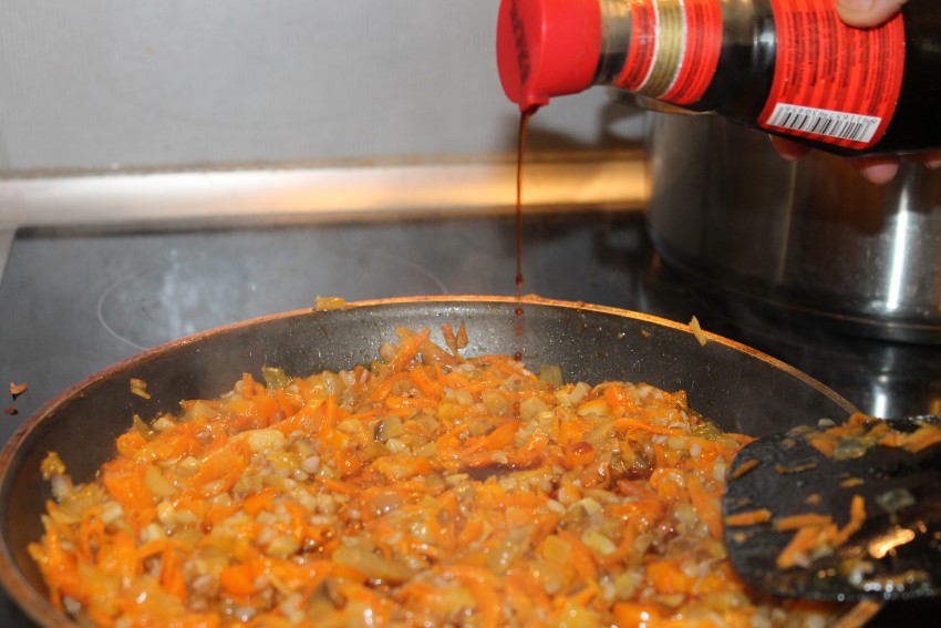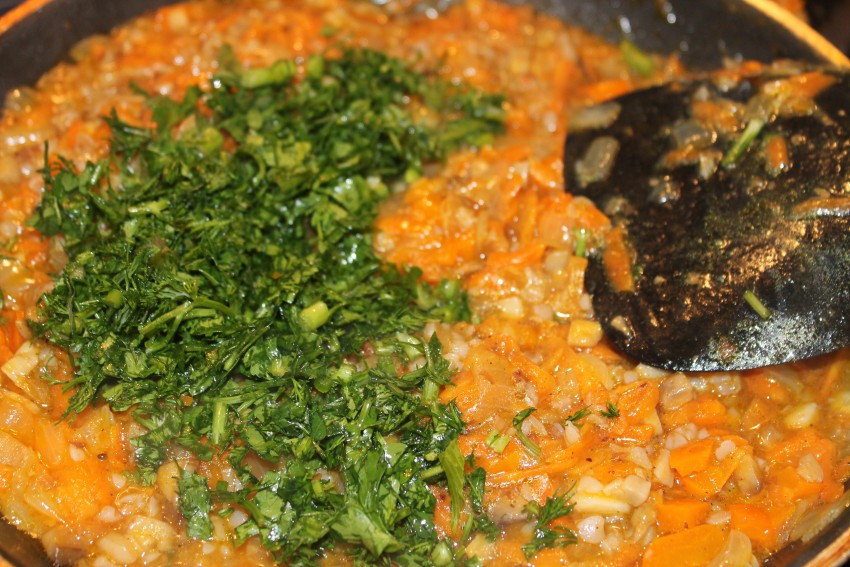 Здесь грибы, морковь, болгарс.перец, лук, и 2-3 стол.ложки гречневой каши.