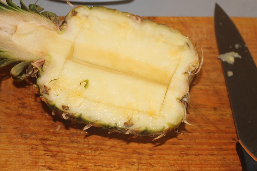 -Ананас -на 2 части удалить кочерыжку, вынуть мякоть