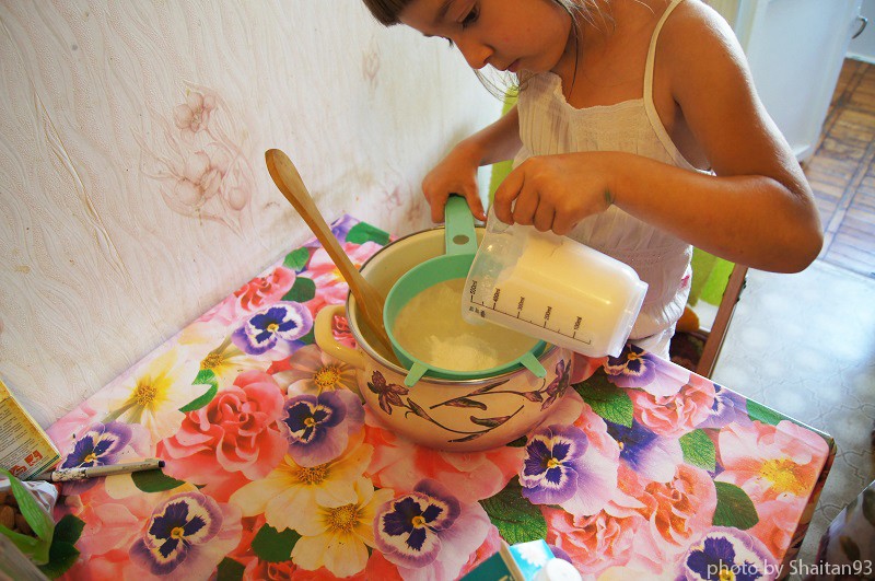 Позвать помощницу, и доверить ей самый главный процесс — смешивание ингредиентов: