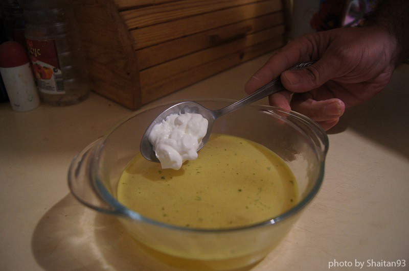 Следующий этап — температурная обработка. Для затравки залил в кастрюлю смесь из поллитра кипятка, бульонного кубика, ложки сметаны и ложки томатной пасты