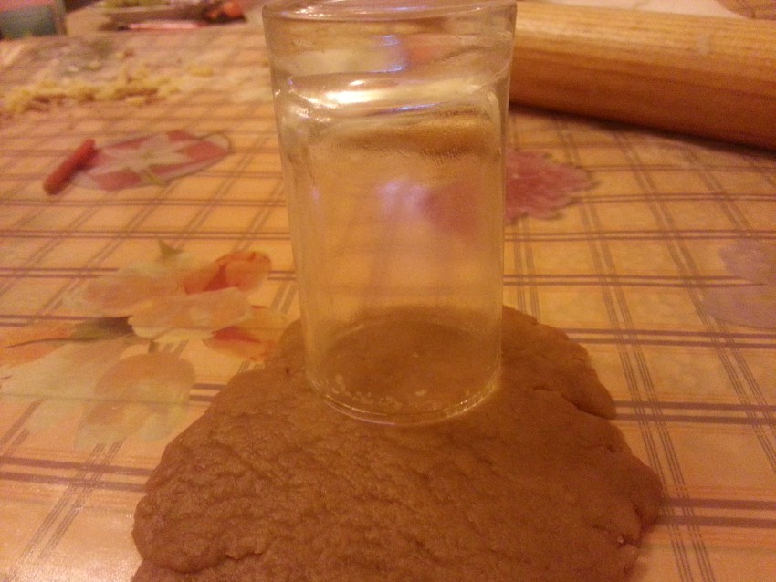 Крышкой с бутылки- диаметром меньше, чем основа делаем прорези- слегка вдавливая ребро крышки в тесто.