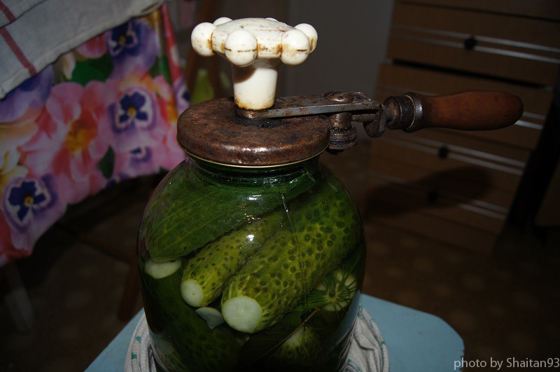 Так же в баллон добавляю столовую ложку уксуса и две-три таблетки аспирина. Для любопытных поясню — ацетилсаллициловая кислота необходима в том случае, если у вас нет прохладного места с постоянно поддерживаемой низкой температурой для хранения стратегических запасов, т. е. погреба. В противном случае вся консервация рискует влететь на воздух, что как правило, случается в самый неподходящий момент и обычно ночью.