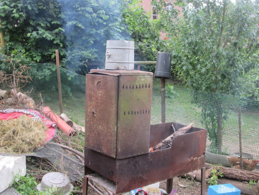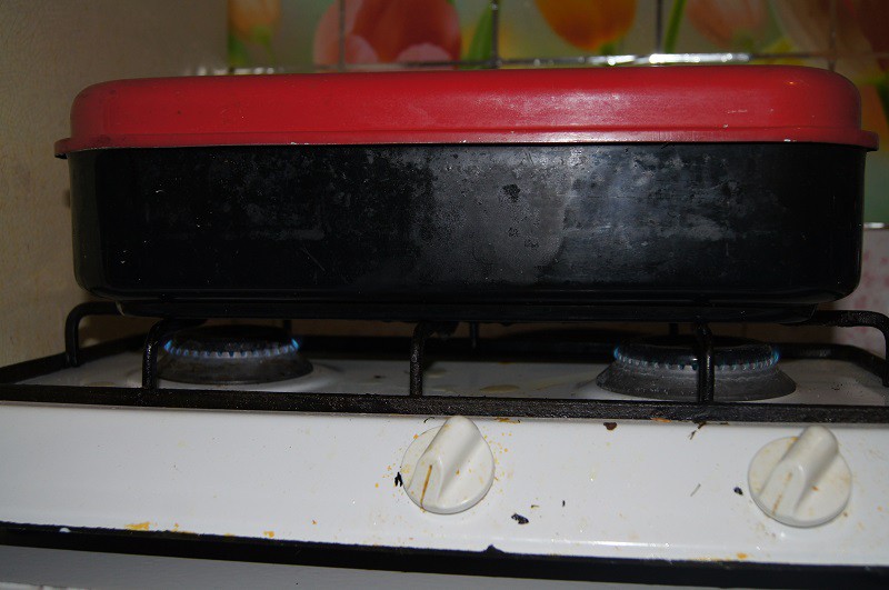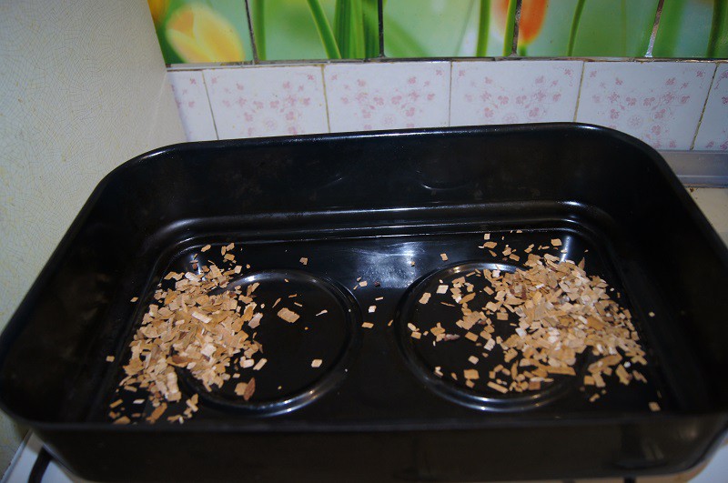 2)коптильня, ольховые опилки, газовая плита, хорошее настроение