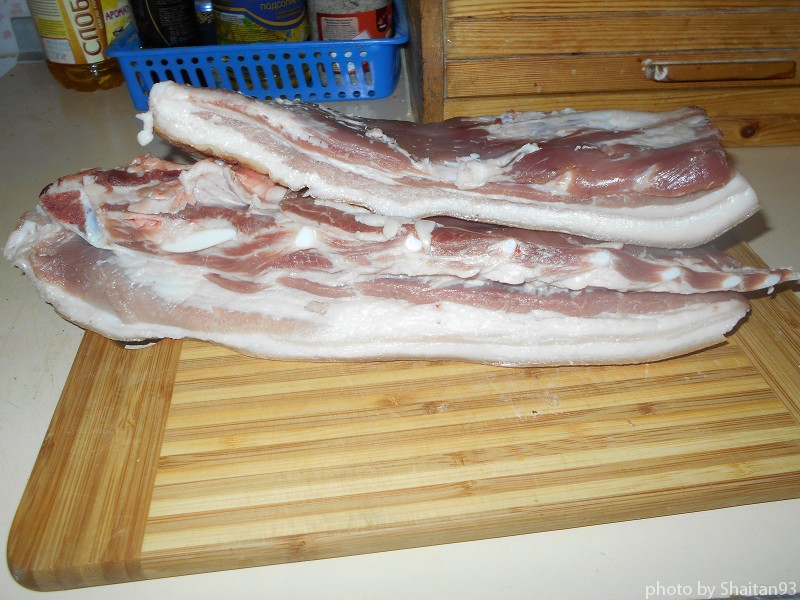 Перво-наперво понадобится оно — САЛО. Но не просто сало, а с хорооооошей такой мясной прожилочкой. Примерно вот такое
