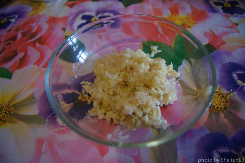 Для неё взял три головки чеснока, а так же черный и красный перец